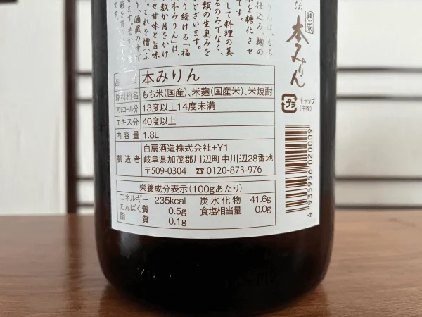 本みりんの原材料表示(もち米・米麹・米焼酎)