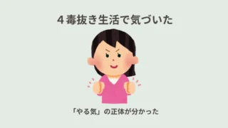 心の立て直し 4毒抜き生活で「やる気」の正体が分かった話 4毒抜き生活をして、無理をしなくても動けるようになりました。その変化を通して、今まで感じていたやる気が違うものだったと気づいた話です。 2026.04.02 心の立て直し